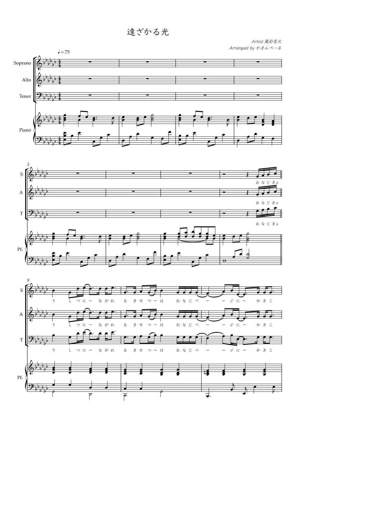 「遠ざかる光」は、中学生や高校生でも無理なく歌える音域を意識して制作した、 混声三部合唱曲です。